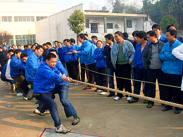 活動于12月26日下午在公司前坪舉行,本次活動共吸引了22支代表隊參賽,每隊參賽隊員12人(男8人,女4人),比賽實行五輪三局兩勝淘汰制晉級方式,抽簽分組決定比賽順序。各參賽隊伍和工作人員以及拉拉隊伍們紛紛以極大的熱情參與到此次活動中,當比賽的哨聲一響起,隊員們一起高呼著“一二三,一二三”, 雙手緊握長繩,憋足了勁拼命往后拉,有的漲紅了臉,有的拔得鞋子都掉了,有的干脆脫掉了厚重的外套…… 拉拉隊也在隊伍旁邊助陣加油,恨不得抓起繩子跟著一起努力!現場的加油吶喊聲和歡呼聲,跺腳聲融成了一片……。