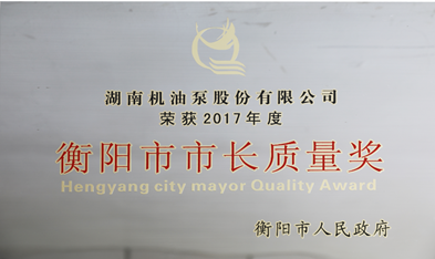 我公司榮獲2017年度 “衡陽市市長質(zhì)量獎”榮譽稱號