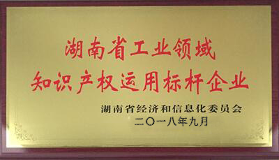 公司獲取“湖南省工業領域知識產權運用標桿企業”榮譽稱號